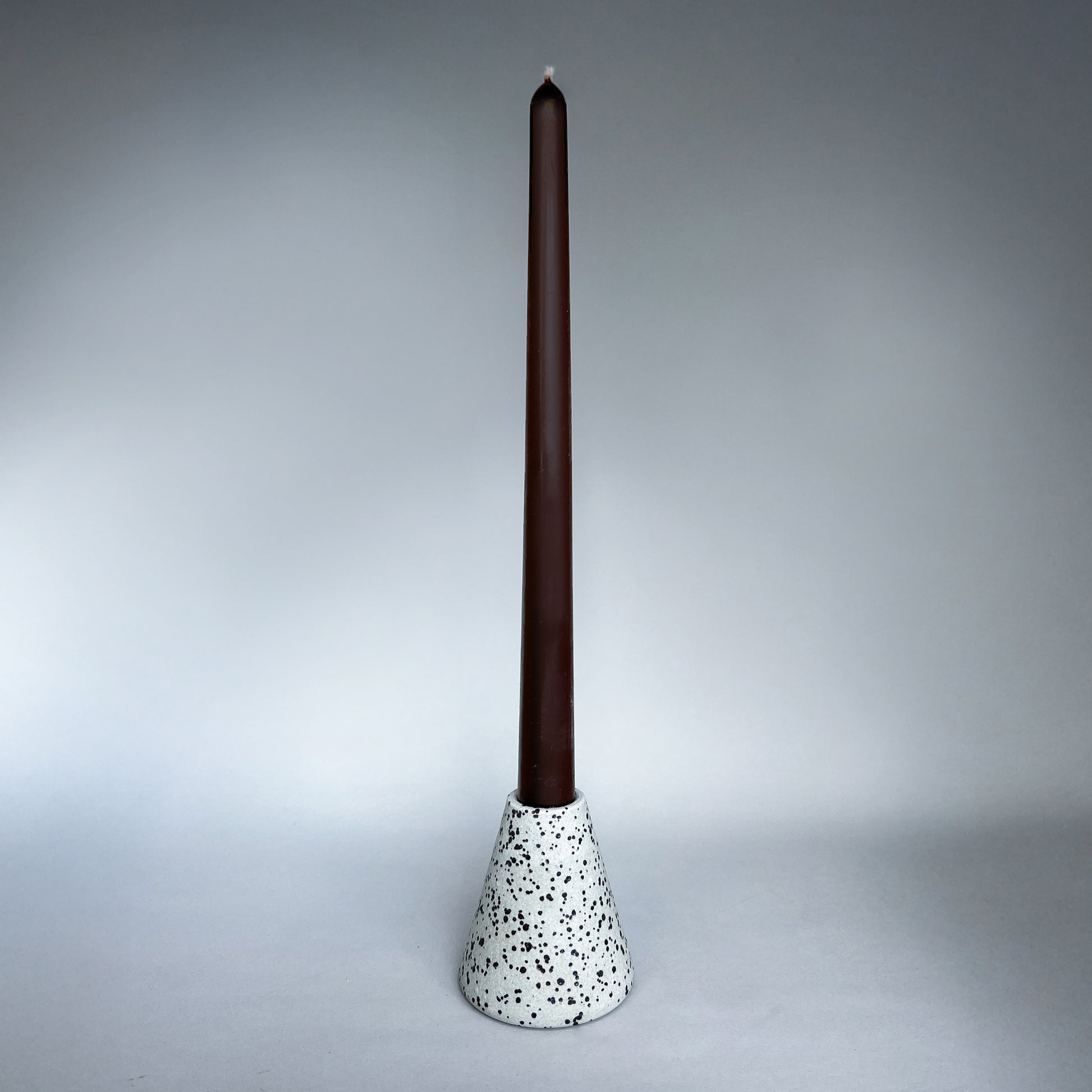 Feito em cerâmica de alta temperatura, o Castiçal Pontos traz a delicadeza do branco com pintinhas escuras e a rusticidade da argila natural, sem esmaltação. Sua textura crua e autêntica convida à pausa e à simplicidade. Vai bem na mesa posta, no canto do autocuidado ou naquele banho à luz de velas — um detalhe que ilumina e acolhe.