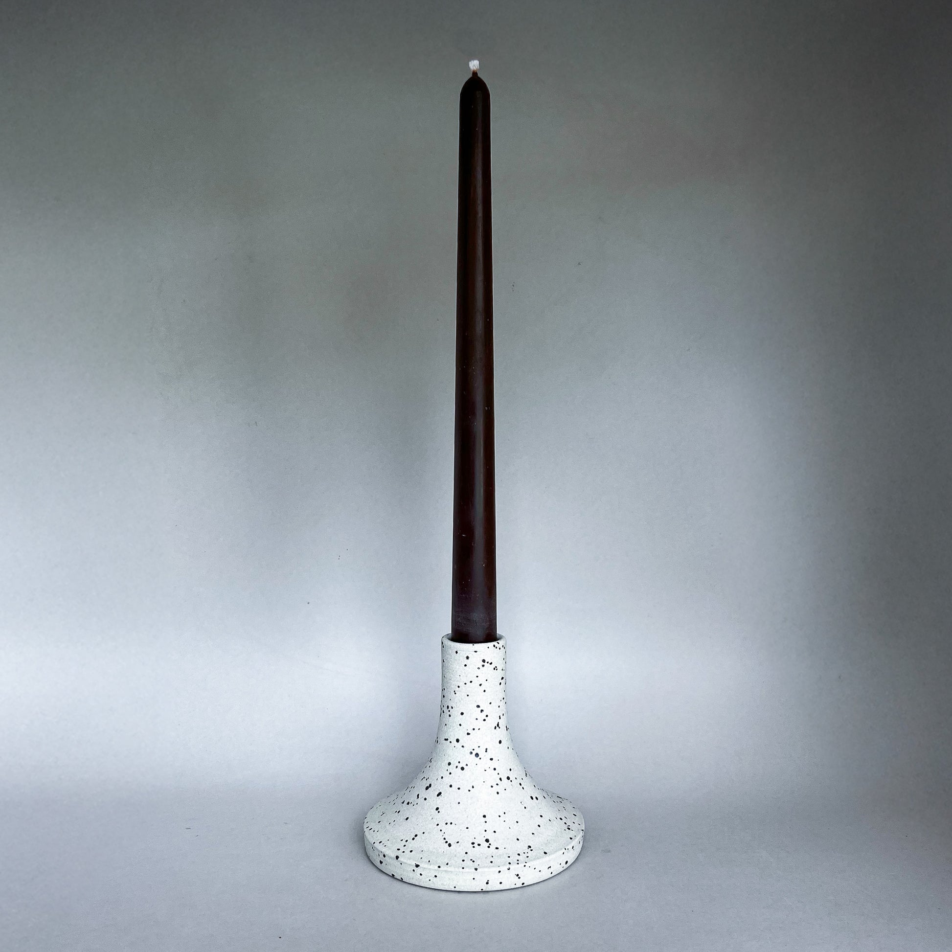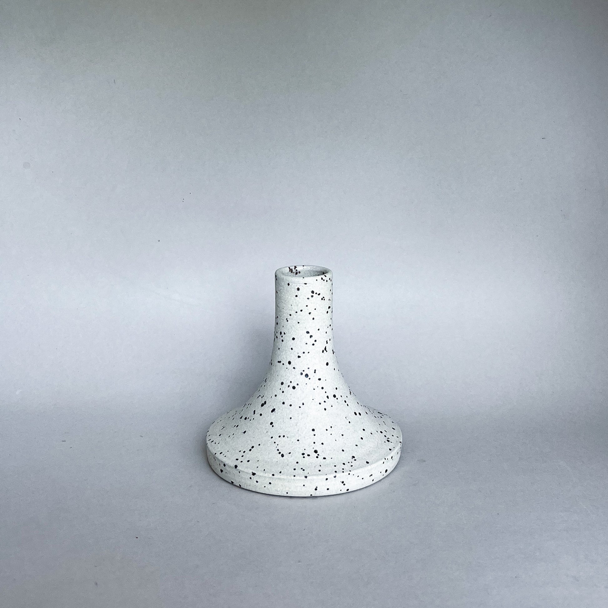 Feito em cerâmica de alta temperatura, o Castiçal Pontos traz a delicadeza do branco com pintinhas escuras e a rusticidade da argila natural, sem esmaltação. Sua textura crua e autêntica convida à pausa e à simplicidade. Vai bem na mesa posta, no canto do autocuidado ou naquele banho à luz de velas — um detalhe que ilumina e acolhe.