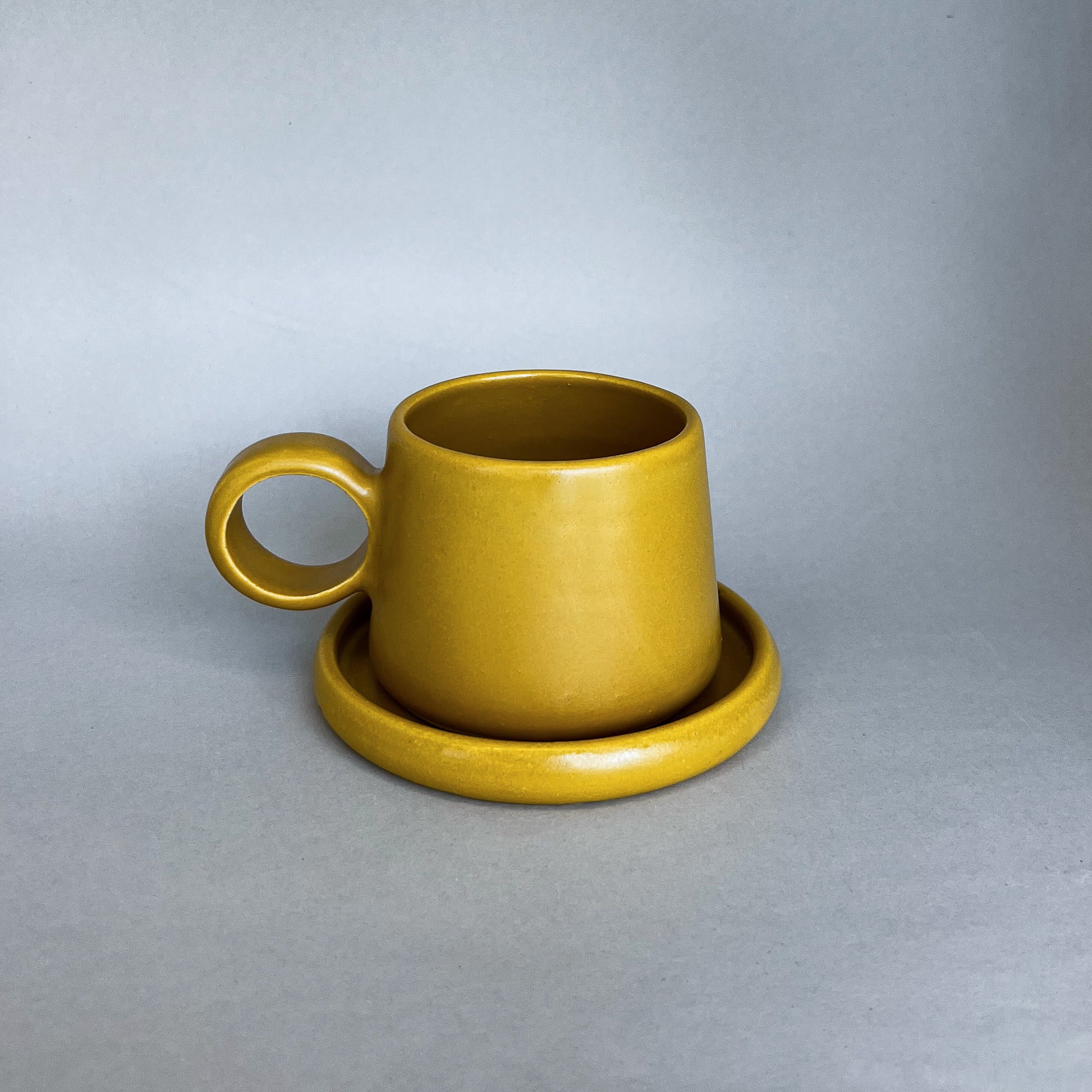 Para os amantes da luz e da boa energia, o conjunto de xícara e pires Solar é um convite para despertar dias mais alegres. Produzidos em cerâmica de alta temperatura, a argila clara se une ao esmalte amarelo acetinado, criando peças radiantes e delicadas, com linhas retas e contornos arredondados que trazem conforto ao toque.